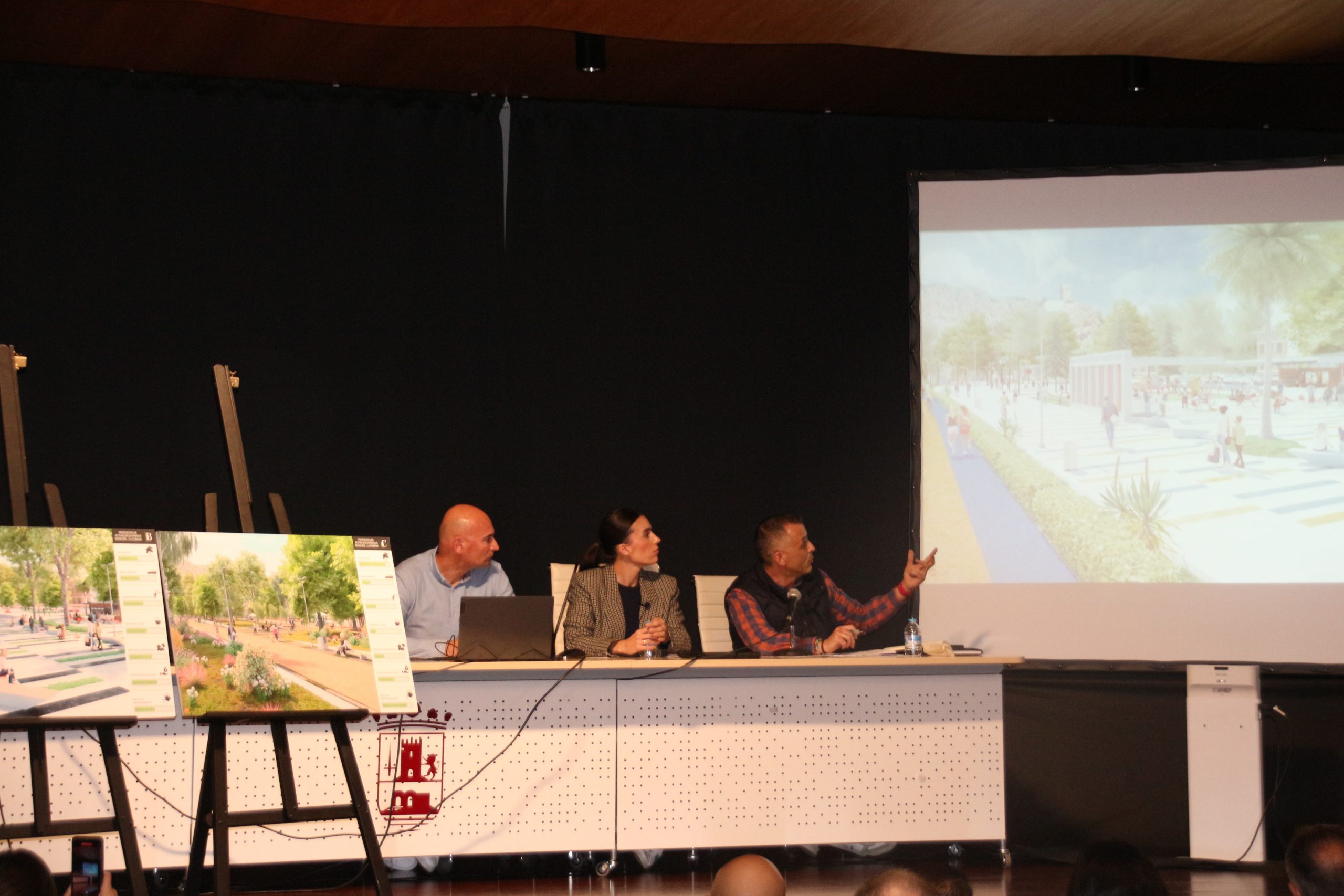 La alcaldesa de Alhama de Murcia, María Cánovas, junto al arquitecto Javier Gamayo, presentaron tres propuestas diferentes: “El más polivalente”, que ofrece una amplia gama de opciones de ocio y servicios; “El híbrido”, que combina elementos de las otras dos opciones; y “Un bosque urbano”, que apuesta por la naturaleza y la vegetación autóctona.