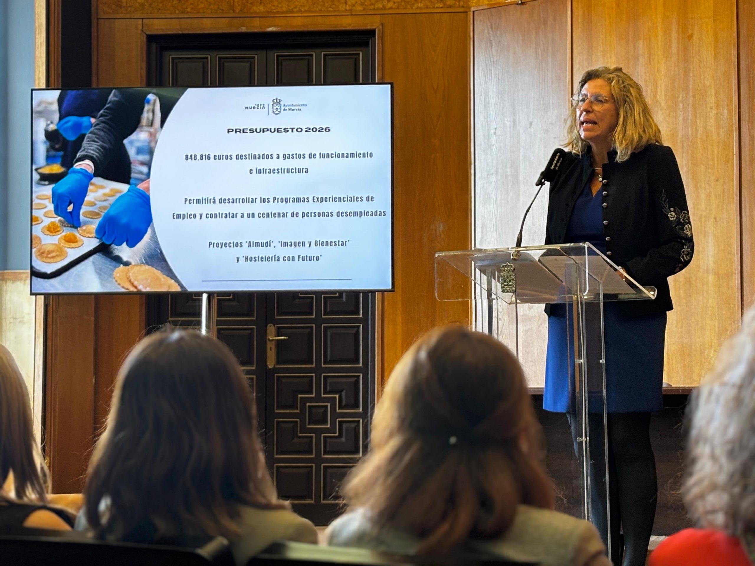 El presupuesto 2026 incluye también acciones formativas dirigidas a personas desempleadas y trabajadores en activo, así como recursos para talleres, maquinaria, suministros de la Escuela Municipal de Hostelería ‘Murcia Emplea’ y materiales didácticos.