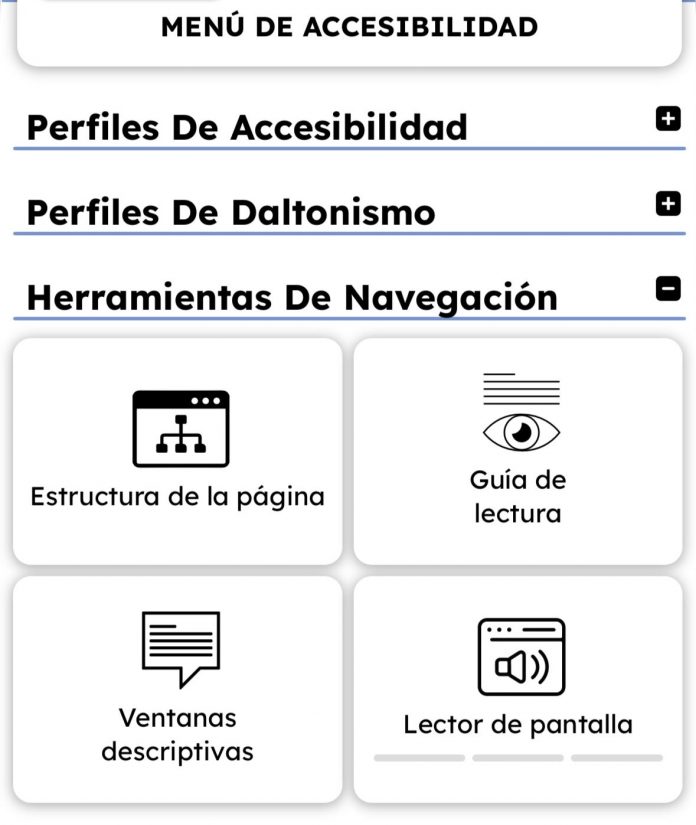 - Texto ampliable hasta un 200%, pensado para usuarios con baja visión.