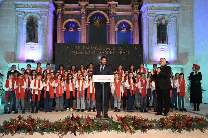 Durante el acto de inauguración, que estuvo amenizado con villancicos interpretados por el Coro del Colegio Luis Costa de Murcia, López Miras recordó que este año se cumplen ocho siglos desde la primera recreación del nacimiento de Jesús de la que se tiene constancia, en 1223. Al respecto, puso en valor la “aportación fundamental” de la Región de Murcia a esta tradición artística, y subrayó que “hoy el belén no se entendería sin la forma que tuvo nuestra tierra de entenderlo y contarlo”.