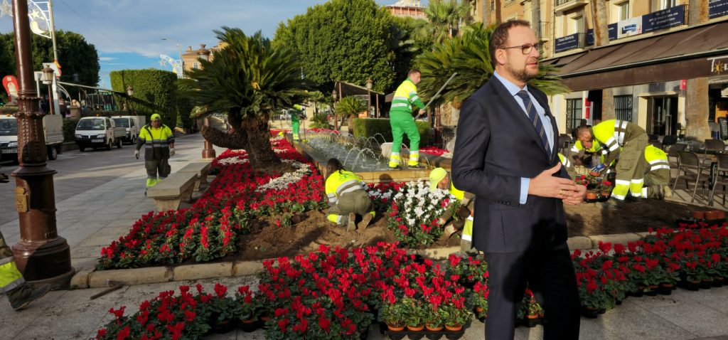Más de 100.000 flores de temporada embellecen las calles, plazas y jardines de Murcia y sus pedanías por Navidad