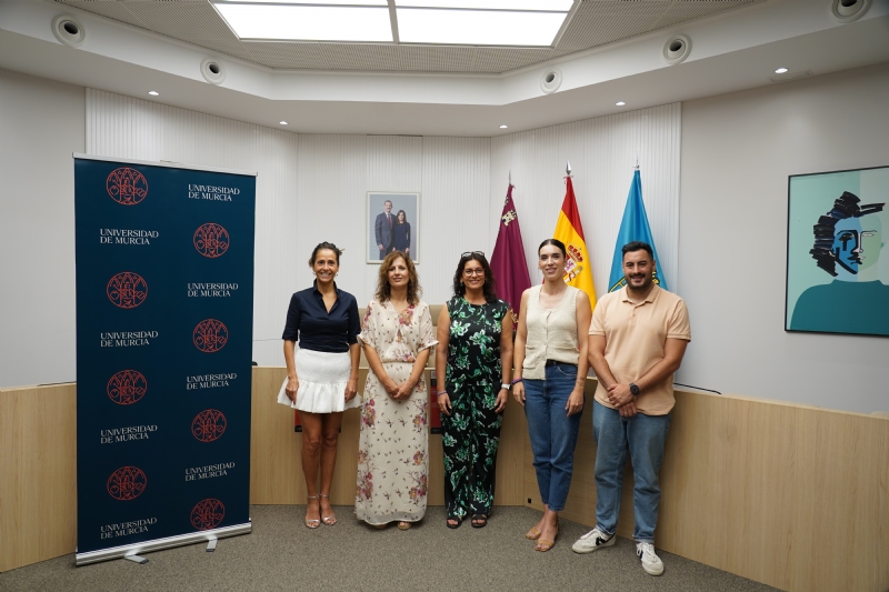 La alcaldesa de Alhama de Murcia, María Cánovas y el concejal de Educación, Daniel Ruano, han presentado esta mañana el curso de extensión universitaria titulado “Promoviendo el ocio inclusivo en la infancia y adolescencia a través del juego y el deporte”, junto a Vanesa Valero, vicerrectora de cursos de formación continua de la UMU, Cristina Sánchez, directora de cursos de extensión universitaria de la UMU y Olga Rodríguez, profesora y directora de la formación.